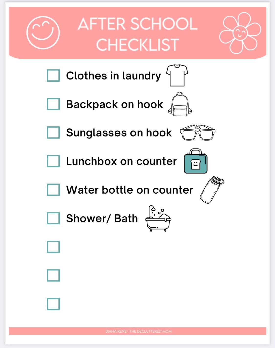 Both of my kids have their own after school checklist, as well as evening checklists. They are laminated and stored on clipboards that hang on a hook in the control center. (well, they did at the old house and will definitely be continued at our new house!)